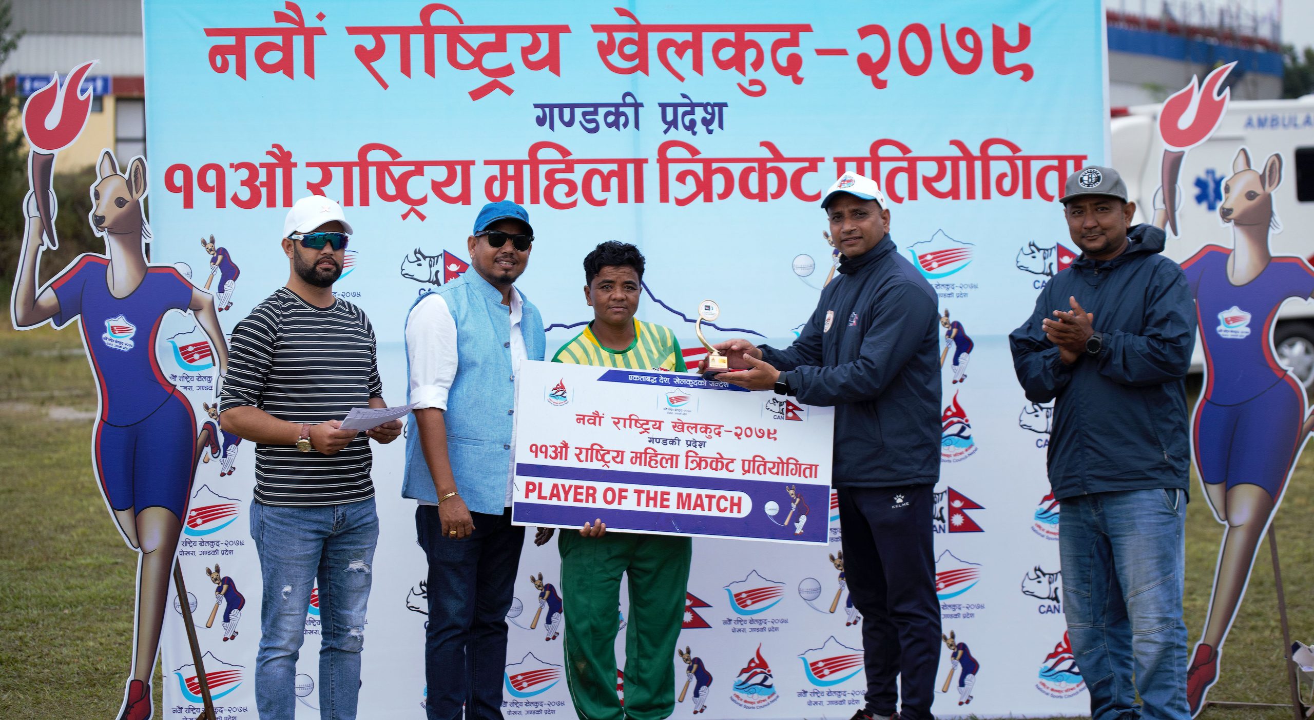 पोखरामा हुदै गरेको नवौँ राष्ट्रिय खेलकुद प्रतियोगिता अन्तर्गत महिला क्रिकेटमा नेपाल सशस्त्र प्रहरी बल (एपीएफ) र सुदुर पश्चिम बिजयी भएका छन् ।