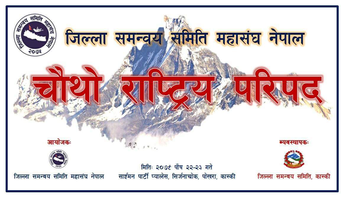 जिल्ला समन्वय समिति महासंघ नेपालको पूर्व निर्धारित चौथो राष्ट्रिय परिषद बैठक पोखरामा हुने भएको छ।