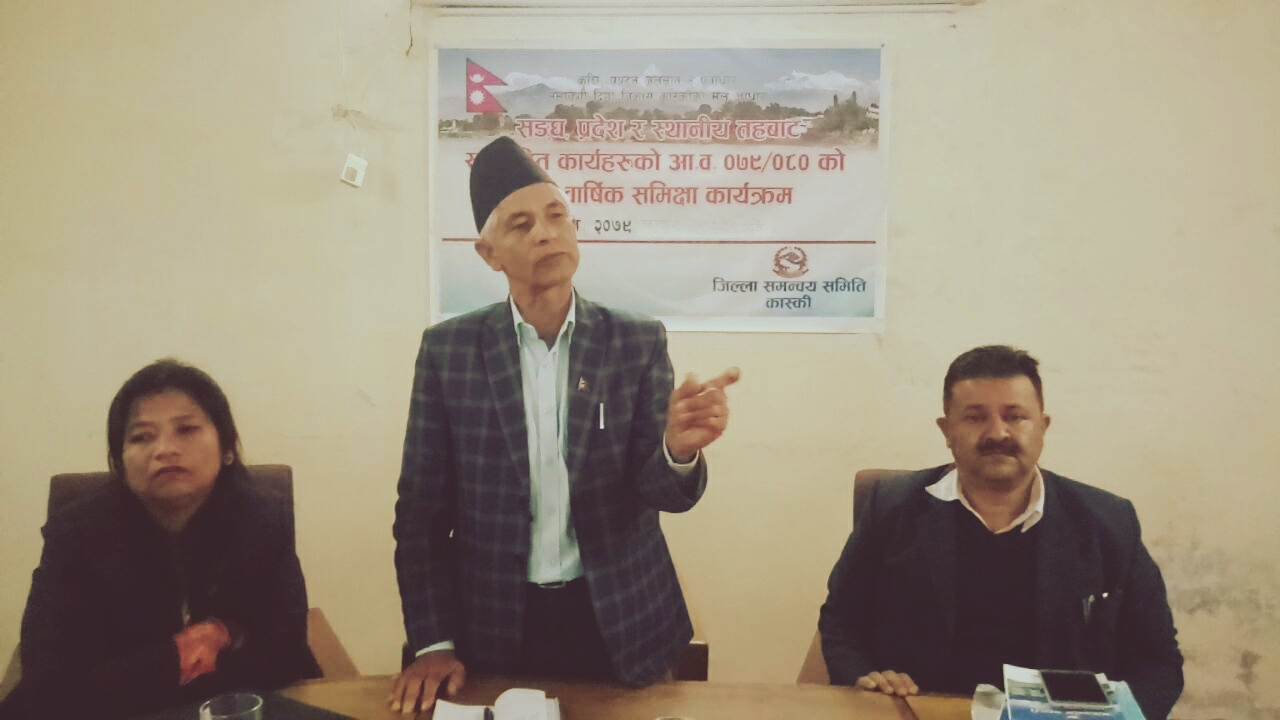 जिल्ला समन्वय समिति कास्कीको आयोजनामा संघ ,प्रदेश र स्थानीय तहबाट आर्थिक बर्ष २०७९/८० मा सम्पादित कार्यहरूको अर्ध बार्षिक समिक्षा कार्यक्रम सम्पन्न भएको छ ।कार्यक्रम जिल्ला समन्वय समिति कास्कीका प्रमुख लिलाधर पौडेलको अध्यक्षतामा सम्पन्न भएको थियो।