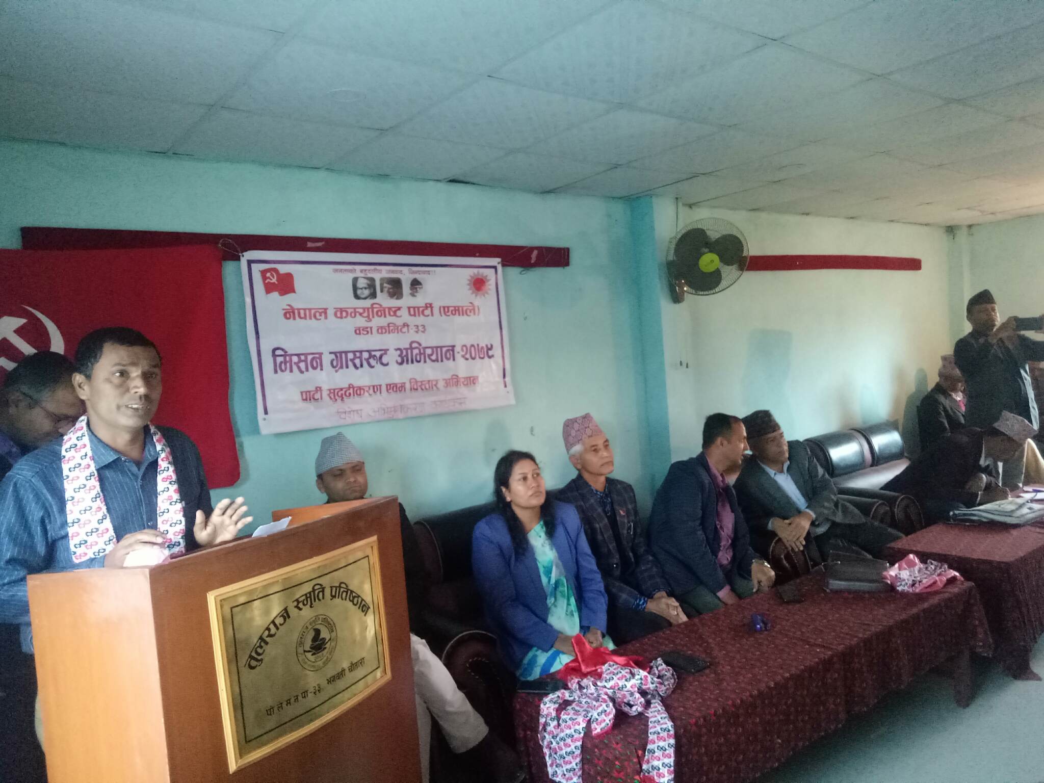 वडा नं.३३ कमिटीले आयोजना गरेको मिसन ग्रासरूट अन्तर्गत वडास्तरिय विशेष अभिमुखिकरण कार्यक्रममा ने क पा एस कास्की जिल्ला कमिटी सचिबालय सदस्य टुकराज भण्डारी र माओवादी केन्द्र पोखरा महानगर कमिटी सल्लाहकार बद्रीनाथ आचार्य, समाजबादी युबा संघ गण्डकी प्रदेश कमिटी सदस्य रबि प्रसाद आचार्य ,वडा कमिटी सदस्य मीन बहादुर नेपाली ,प्रबिण आचार्य , सुमन पौडेल , रामेश्वर बस्टाकोटी,,कृष्ण प्रसाद पौडेल सहितका दर्जन बढी नेता कार्यकर्ताहरू एमालेमा समाहित हुनुभएको हो । उहाँहरूलाइ एमाले केन्द्रिय कमिटी सदस्य तथा अभियानका पोखरा महानगर कमिटीका लागि केन्द्रिय प्रतिनिधि मायानाथ अधिकारी , केन्द्रिय सदस्य बिद्या भट्टराई , पार्टीका प्रदेश कमिटी उप सचिब रश्मि आचार्य ,प्रदेश कमिटी सचिबालय सदस्य तथा जिल्ला समन्वय समिति कास्कीका प्रमुख लिलाधर पौडेल सहितका नेताहरूले स्वागत गर्नुभएको थियो।