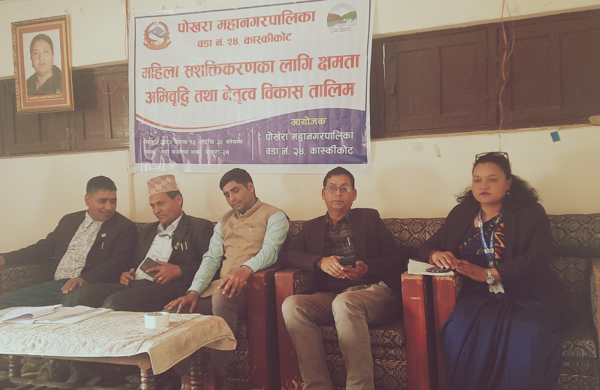 पोखरा महानगरपालिका वाड नम्बर २४ कास्कीकोटको आयोजना मा ६ दिने महिला सशक्तिकरण क्षमता अभिवृद्धि तथा नेतृत्व विकास तालिम आज बैशाख १५ देखि २० सम्म आफ्नै प्राङ्गणको सभाहलमा सुरु गरेको छ ।