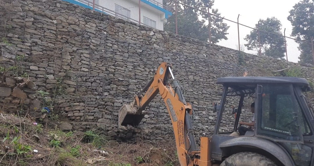 आज पाेखरा बागलुङ बसपार्क पछाडी रहेको सगरमाथा बाेडिङ्ग स्कुलका सञ्चालकले फिर्केखाेलाकाे मापदण्ड मिचि अतिक्रमण गरी लगाएकाे वाल तथा ढुंगाले भरेको तारजाली को पर्खाल नगर प्रहरीले भाडाको डाेजर लगाएर भत्काएकाे छ ।