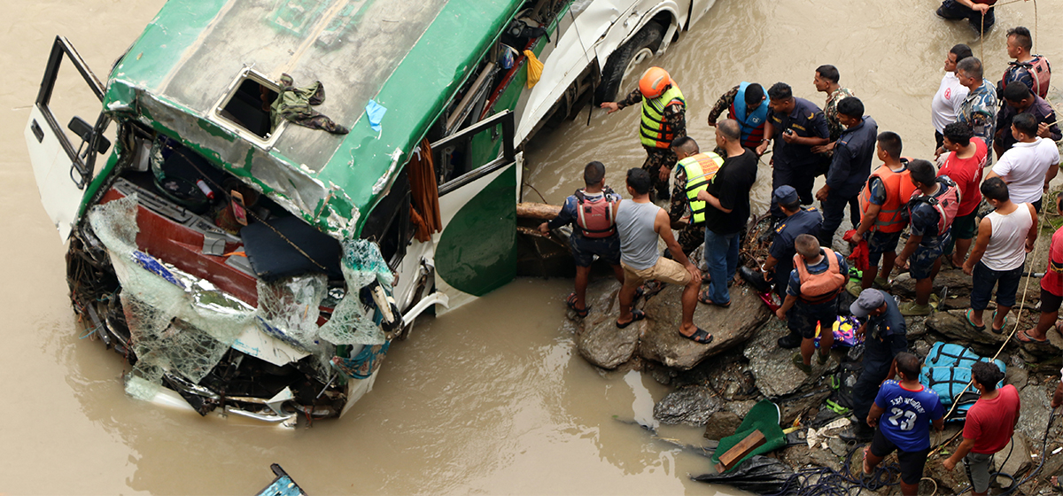 धादिङको गजुरी गाउँपालिका–२ चालिसे भन्ने स्थानबाट त्रिशूली नदीमा यात्रु बस खस्दा ८ जनाको मृत्यु भएको छ। बस दुर्घटनामा मृत्यु हुने मध्ये चार जनाको सनाखत भएको छ ।