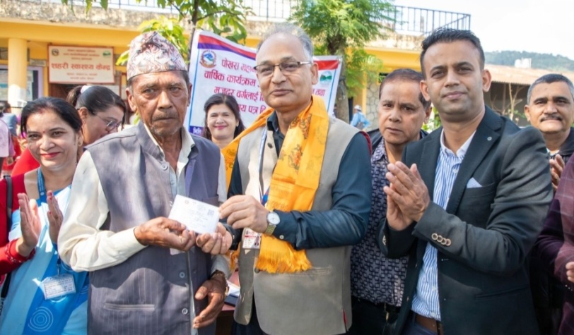 पश्चिमाञ्चल क्षेत्रीय अस्पतालका निर्देशक भरत खत्रीको प्रमुख आतिथ्यतामा वडा भित्रका १०९ जना विपन्न तथा मजदुरहरुले निशुल्क स्वास्थ्य बिमा कार्ड प्राप्त गरेका हुन् ।