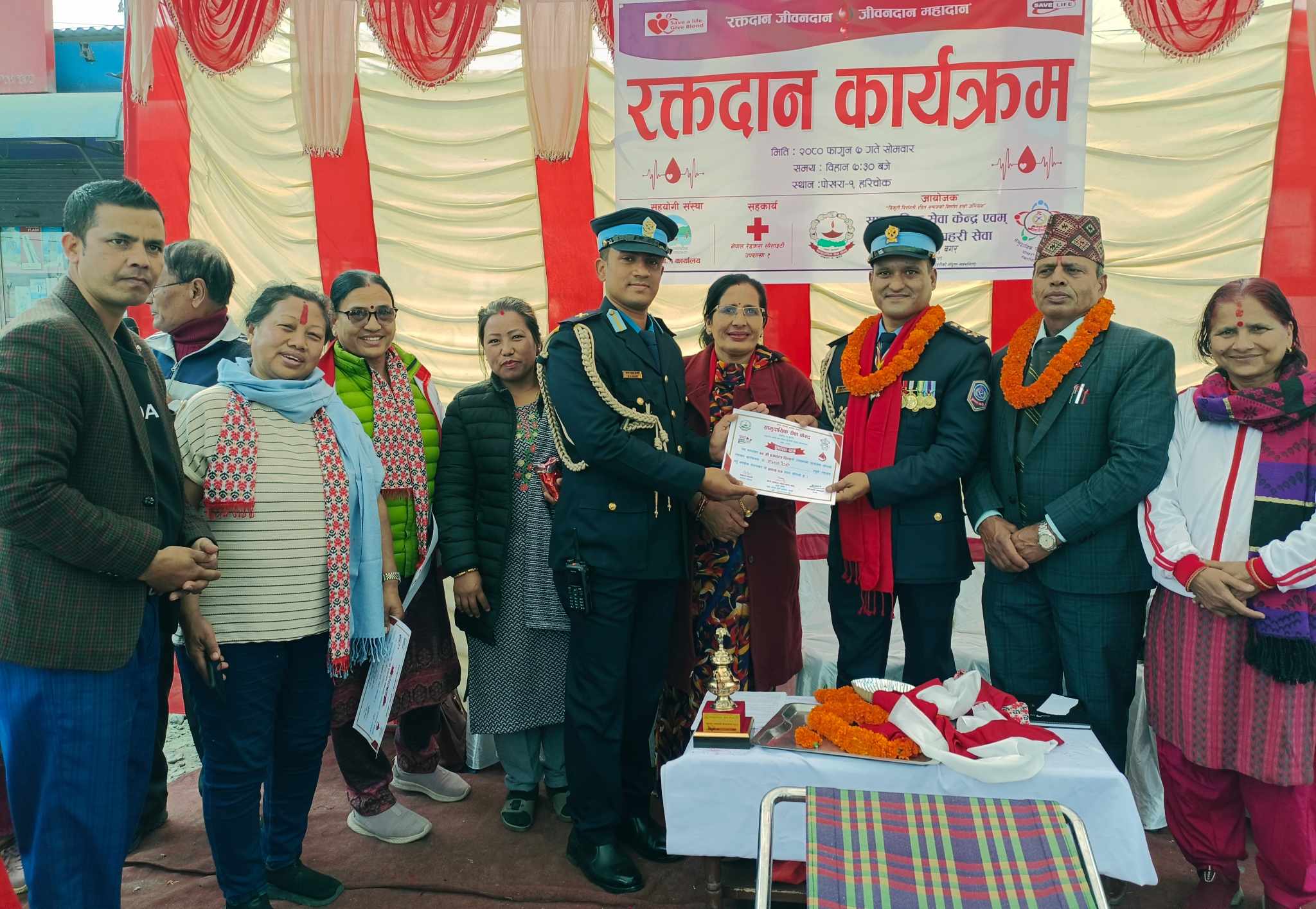 सामुदायिक सेवा केन्द्र एवम् सामुदायिक प्रहरी सेवा पोखरा–१ वगरको आयोजनामा ७४ औं प्रजातन्त्र दिवसको अवसरमा रक्तदान कार्यक्रम सम्पन्न गरेको छ ।