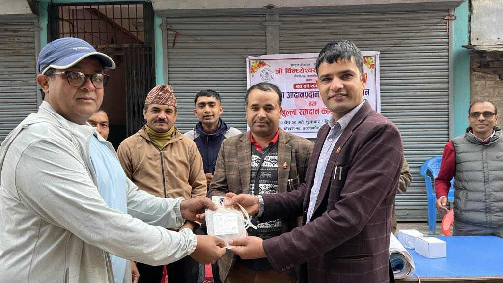बिन्ध्यश्वरी युवा क्लव पाेखरा महानगरपालिका वडा न १९ तल्लाकाेट ठाटीको आयोजनामा नया वर्ष २०८१ काे शुभकामना आदनप्रदान, खुल्ला रक्तदान कार्यक्रम तथा भित्तेपात्राे विमाेचन कार्यक्रम सम्पन्न गरेको छ।