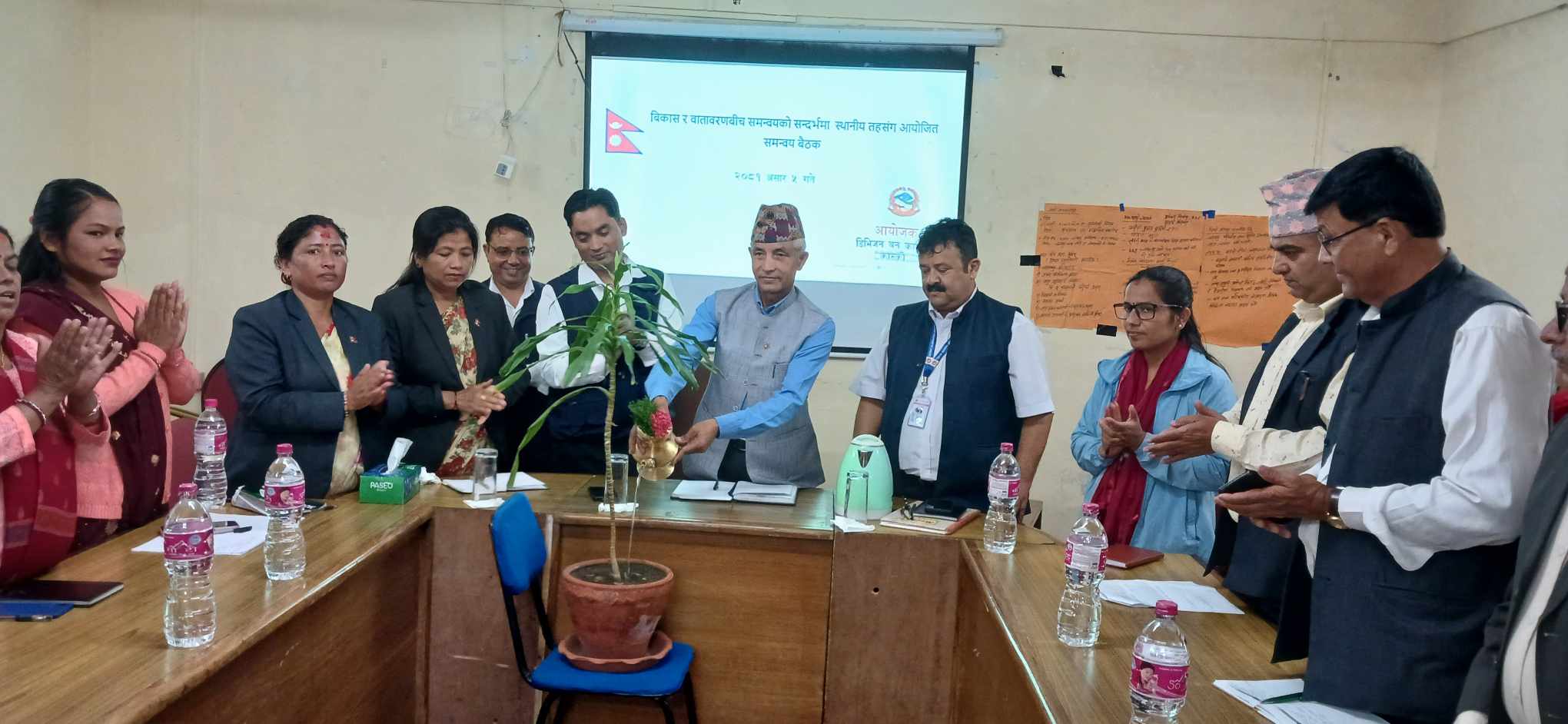 कार्यक्रममा कास्कीका जिल्ला समन्वय अधिकारी नवराज बरालले बिकास र बाताबरणको बिचमा देखिएका असन्तुलित बिकासका क्रियाकलाप न्यूनीकरण गर्न बैठक आयोजना गरिएको उल्लेख गर्नुभयो। कास्कीका डिभिजनल बन अधिकृत कोमलराज काफ्लेले बाताबरण मैत्री सन्तुलित बिकासका लागि स्थानिय तहको भुमिका बिषयमा चर्चा गर्नुभएको थियो ।
