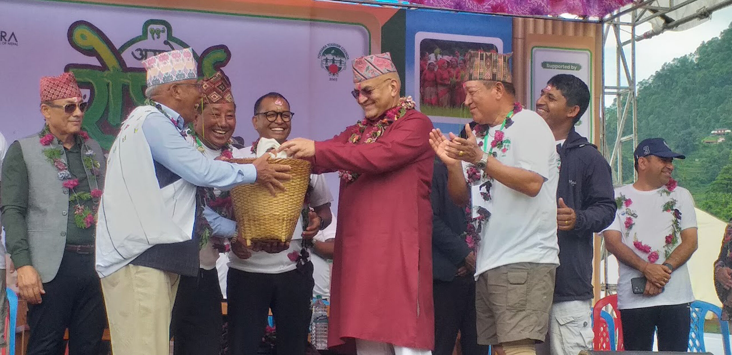 गण्डकी प्रदेशका मुख्यमन्त्री सुरेन्द्रराज पाण्डेले कृषि उत्पादनलाई पर्यटनसँग जोड्नुपर्नेमा जोड दीइरहदा किसानले मुख्यमन्त्री पाण्डेलाई जेठो बुढोको धान र घ्यू उपहार दिनु भएको थियो ।