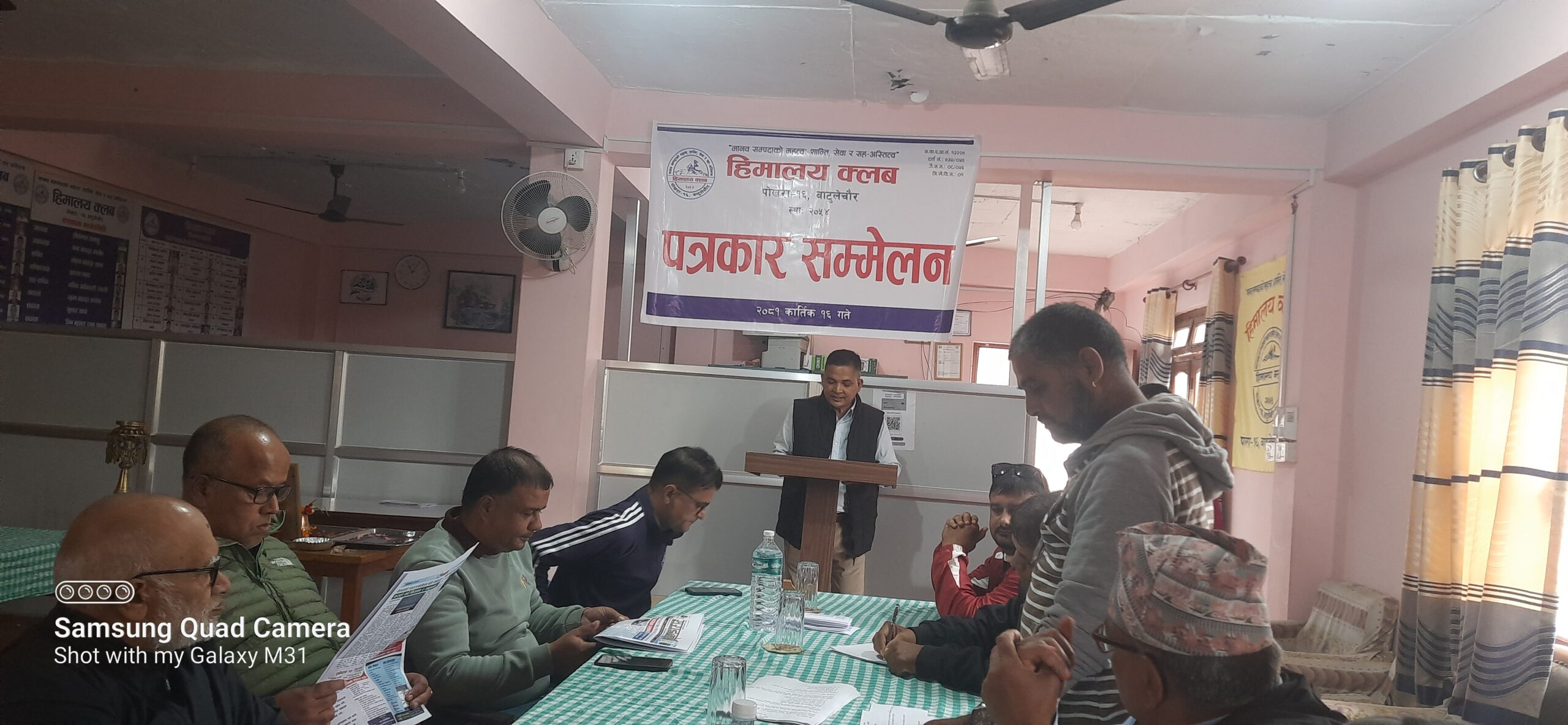 हिमालय क्लवको २८औं स्थापना दीवसको सन्दर्भमा यहि कार्तिक २२ गते आयोजित रक्तदान, चियापान तथा शुभकामना आदानप्रदान लगायत विविध कार्यक्रमहरूको बिषयमा जानकारी दिन क्लव प्राङ्गणमा आज पत्रकार सम्मेलन सम्पन्न भएको छ।