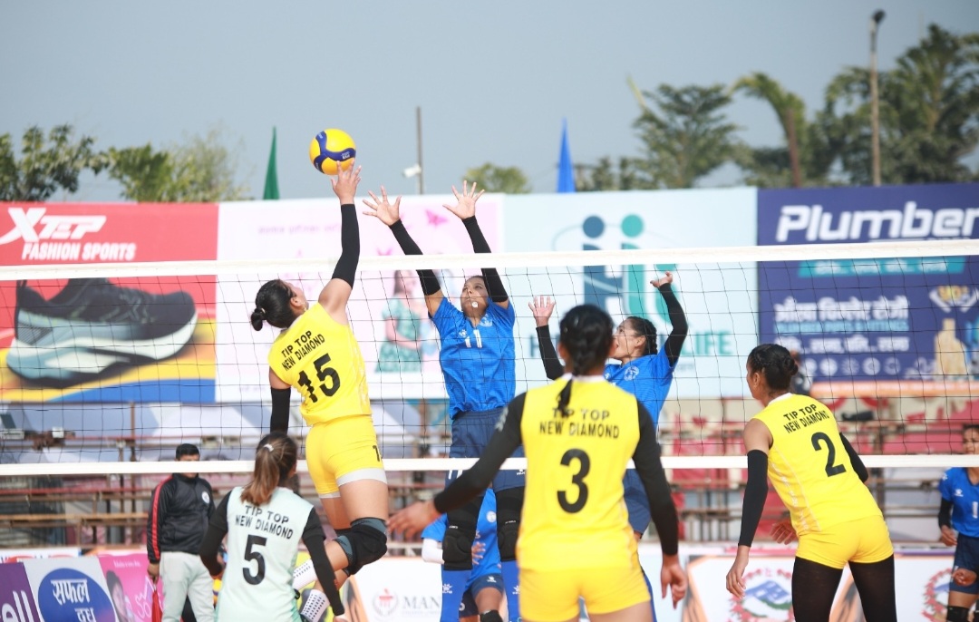 नेपाल पुलिस क्लबलाई पराजित गर्दै टिपटप न्यू डायमण्ड स्पोटर््स क्लब पोखरामा जारी एनसेल पाँचौं टाइगर कप राष्ट्रिय तथा अन्तर्राष्ट्रिय क्लब महिला तथा पुरुष भलिबल प्रतियोगिताको महिलातर्फ दोस्रो क्वालिफायरमा प्रवेश गरेको छ । पोखरा रंगशालामा बिहीबार बिहान भएको एलिमिनेटर खेलमा न्यू डायमण्डले पुलिसलाई ३–० को सोझो सेटमा पराजित गरेको हो ।