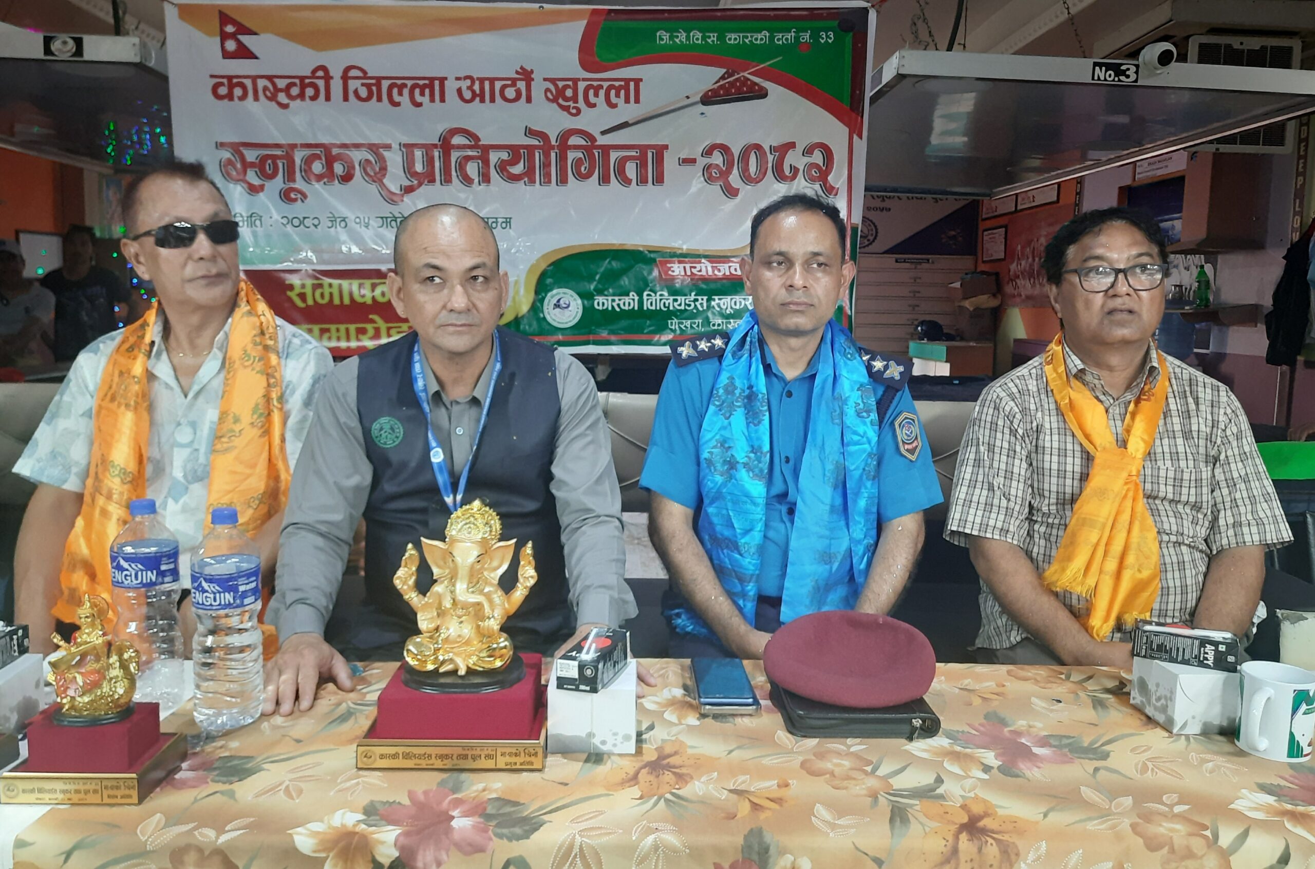 आठौं खुल्ला जिल्ला स्नुकर प्रतियोगितामाको समापन कार्यक्रमको अध्यक्षता स्नुकर सघका अध्यक्ष दिलिप सागर कुमार साहिले गर्नुभएको थियो भने कार्यक्रमको प्रमूख अतिथि जिप्रका कास्की प्रहरी प्रमुख उपरीक्षक (डिएसपि)स्याम बाबु वलियाले प्रमुख अतिथिको आतिथ्यता ग्रहण गर्नुभएको थियो।