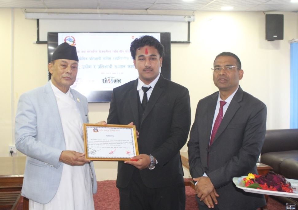 गण्डकी प्रदेश सरकार अन्तर्गत सामाजिक विकास, युवा तथा खेलकुद मन्त्रालयको आयोजनामा ‘दिगो तथा सम्मानित रोजगारी का लागि सीप परियोजना’ अन्तर्गत औद्योगिक प्रशिक्षार्थी तालिम (अपे्रन्टिशीप) कार्यक्रमका उत्कृष्ट शिक्षालय, उद्योग र प्रशिक्षार्थी लाई सम्मान गरिएको छ ।