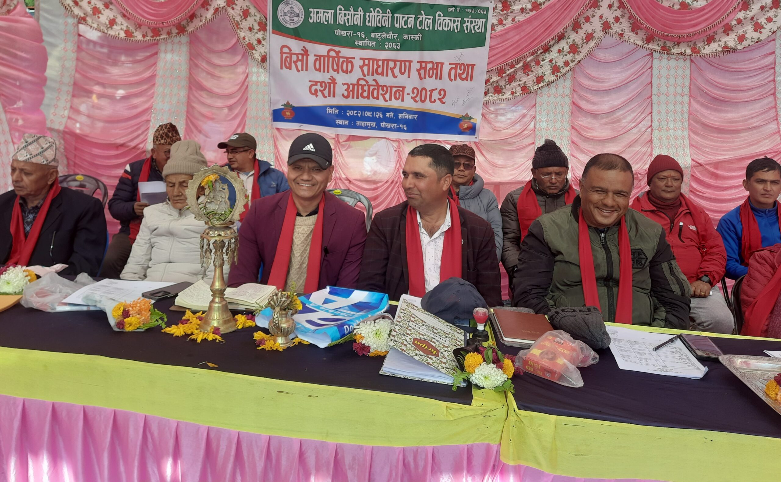 पोखरा अमला बिसौनी धोबिनी पाटन टोल विकास संस्थाक अध्यक्ष खगेन्द्र थापाको अध्यक्षतामा सुरु भएको २० औँ वार्षिक साधारण सभा तथा १०औँ अधिवेशन कार्यक्रमको प्रमुख अतिथि पोखरा महानगरपालिका वडा नं १६ का वडाध्यक्ष अमृत शर्मा तिमिल्सिना हुनुहुन्थ्यो भने विशेष अतिथिमा हिमालय क्लबका अध्यक्ष मोहन थापा हुनुहुन्थ्यो अतिथिहरुमा विभिन्न संघ संस्थाका प्रतिनिधिहरु टोल विकास संस्थाका प्रतिनिधिहरु लगायत का व्यक्तिहरूको उपस्थितिमा भएको कार्यक्रमलाइ संस्थाका सचिव राजु खड्काले भव्य र सभ्य रूपले सञ्चालन गर्नुभएको थियो।