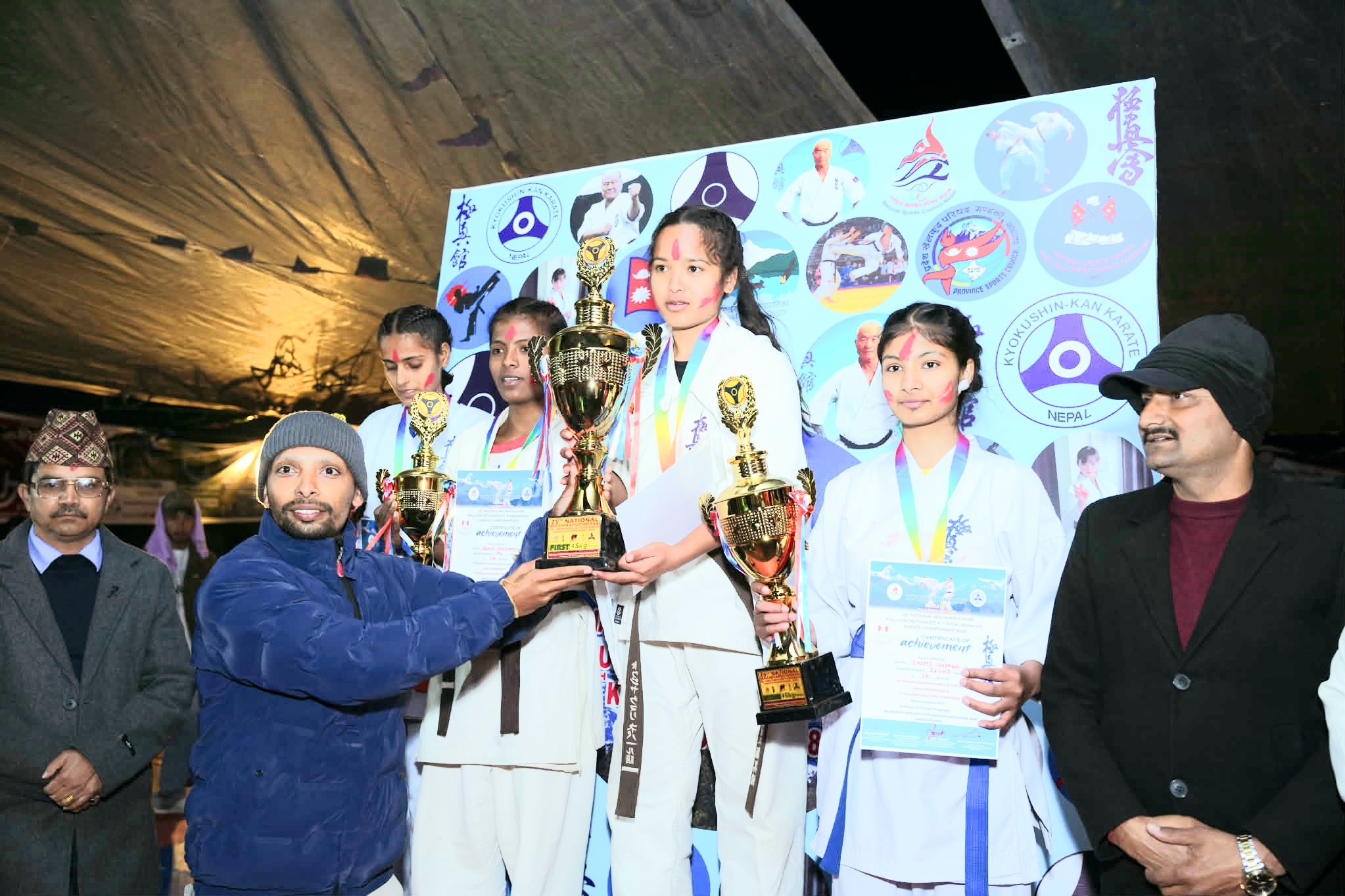 कार्यक्रममा पोखरा महानगरपालिका खेलकुद विकास समितिका अध्यक्ष तथा नेपाल क्योकुशिन (कान) कराते संघका प्रमुख प्रशिक्षक श्री दीपक बहादुर गोदार, करातेका ब्रान्च चिफ तथा लालबन्दी नगर खेलकुद विकास समितिका सदस्य भीम प्रसाद काफ्ले, सिनियर खेलाडी तथा प्रशिक्षक दान बहादुर क्षत्री, पूर्व राष्ट्रिय खेलाडी तथा विशेष सहयोगी नरेश बहादुर जी.सी., करातेका केन्द्रीय डोजो प्रशिक्षक तथा नेपाल फुल कन्ट्याक्ट कराते महासंघका केन्द्रीय उपाध्यक्ष धन बहादुर तामाङलगायतलाई खेलकुद विकासमा पुर्याएको योगदानको कदर गर्दै सम्मान गरिएको थियो।