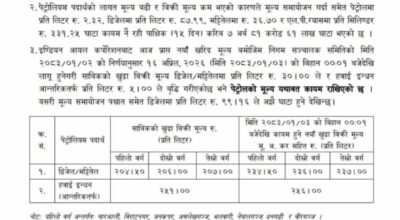 नेपाल आयल निगमले फेरि पेट्रोलियम पदार्थको मूल्यवृद्धि गर्यो